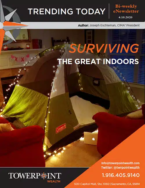 At Towerpoint Wealth, we have been relentless in communicating with and directly helping clients and colleagues navigate the myriad of financial considerations, risks, and opportunities during these extremely uncertain times, and remain steadfast in helping you reach the goal of achieving complete economic peace of mind. For some specific perspectives on what is happening in the world of finance and the markets, we have included two excellent resources at the bottom of this email. Additionally, our President, Joseph Eschleman, was recently featured in a coronavirus-focused profile on AdvisorHub.